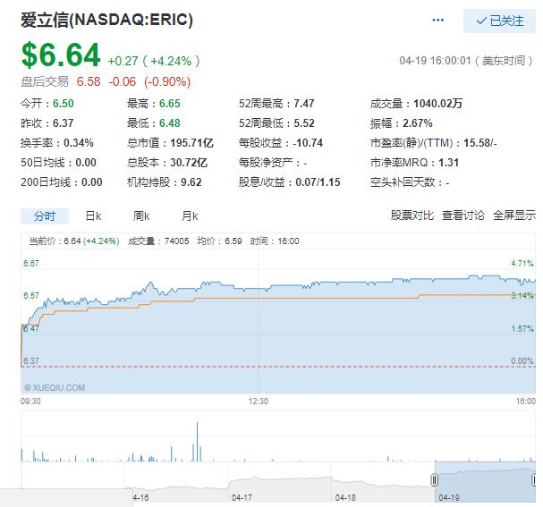 上涨的公司包括:爱立信(涨4.24%)、Roku流媒体(涨3.09%)、特斯拉(涨2.29%)、亚马逊(涨1.90%)、谷歌(涨1.46%)、GoPro(涨1.38%)、Snap(涨1.30%)、Facebook(涨1.05%)、eBay(涨0.86%)、潘多拉媒体(涨0.75%)、速汇金(涨0.23%)。