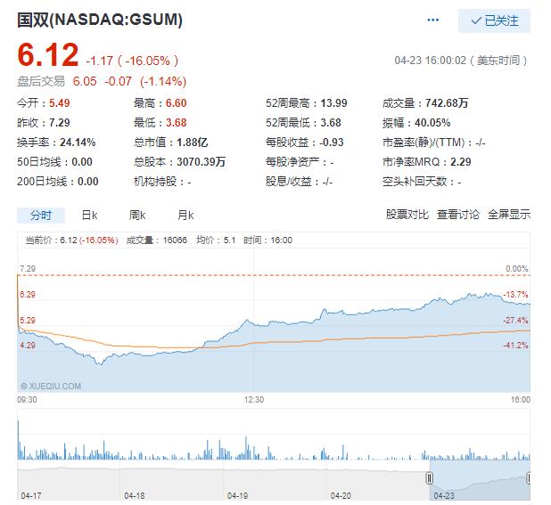 国双公司股价