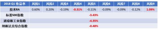 2018第一季度宜信财富投米RA美元资产组合各风险等级收益率与美股主要指数收益率对比