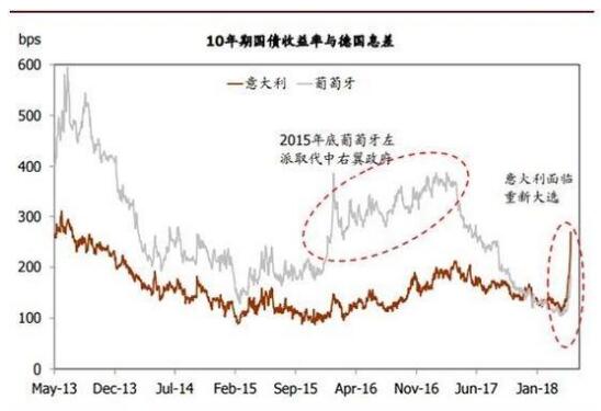 北京时间5月28日,意大利组阁失败,意大利政治不稳,政治局势不确定性增强,以及重新大选的风险刺激市场避险情绪飙升,意大利国债遭受打击,意大利资产被加速甩卖。5月29日意大利10年期国债收益率涨幅超10%,自2014年6月以来首次突破3%。