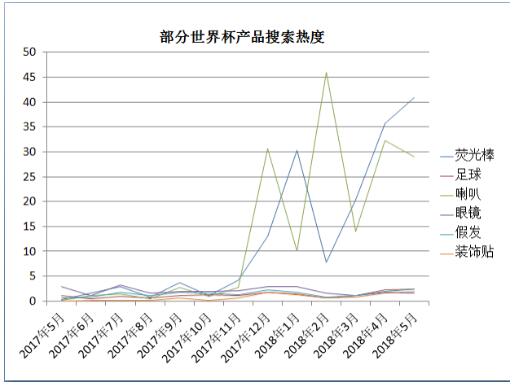 一、2018年上半年世界杯相关产品搜索热度比2017年下半年增长一倍多