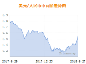 6月27日,人民币兑美元中间价报6.5569,上一交易日中间价6.5180