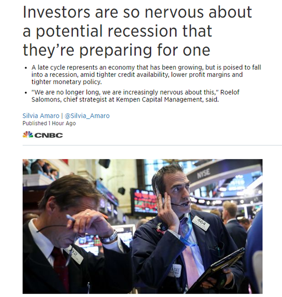 在利率上升和信贷紧缩之际,一些基金经理越来越担心下一次经济衰退即将到来。Kempen Capital Management首席策略师Roelof Salomons认为,虽然现在经济出现转向还有点早,但对市场而言,却是应该出现翻转的时候了。在利率上升和信贷紧缩之际,一些基金经理越来越担心下一次经济衰退即将到来。7月5日,Kempen Capital Management首席策略师Roelof Salomons在接受采访时表示:“现在的情况是典型晚晚周期阶段。所以,上次我还在说我们看好市场并感到紧张。但是,现在我们不再看好市场了,我们对情况感到越来越紧张。”晚周期代表这样一种情况:在信贷紧缩、利润率下降和货币政策收紧的背景下,经济一直在增长,但即将陷入衰退。Salomons表示,目前出现了晚周期的所有证据:收益率曲线趋于平缓,通常预示着经济衰退即将到来;信贷息差正在扩大,表明投资者害怕承担风险;防御类股票的表现要好于其他股票。如果投资者想度过经济周期的变化,那么防御类股票将是安全的选择。Salomons表示:“每个人都在谈论这个周期何时会翻转,但那是2019年年底,或2020年早期才会发生的故事。但是目前情况不太好,当下现金为王。现在经济出现转向还为时过早,但对市场而言,现在是出现翻转的时候了。他这是在暗示,随着投资者愿意承担的风险减少,因此他们更喜欢美国股票,而不是新兴市场股票,以及具有投资级别的信贷等资产。7月4日,Indosuez Wealth Management的资深股票分析师Laurent Godin在一份报告中也表达了类似的担忧。他在报告中写道:“市场对全球经济扩张周期的持续时间感到担忧,现在牛市持续的时间也有限。”牛市结束将意味着股票价格可能下跌,并推动抛售潮的出现。Godin指出:“在这种情况下,值得持有的最好板块应该是技术、金融和能源行业股票。这些也是未来几个季度分析师上调评级的板块。不过,在我们看来,未来几个月股市将面临更不稳定的环境,上行空间有限。”