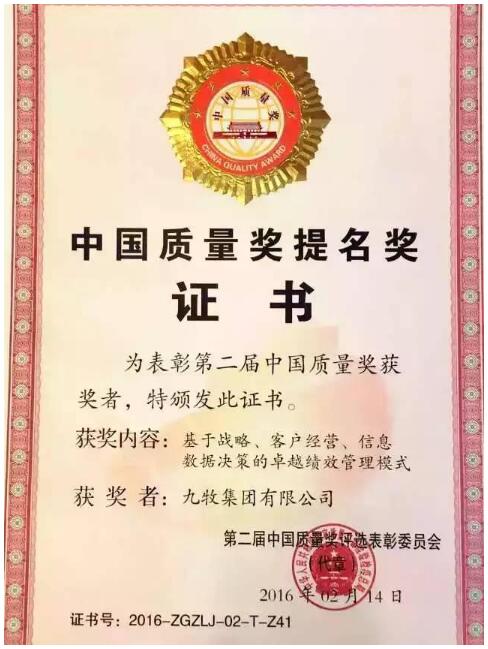 2016年 “两会”上,九牧智能马桶盖得到时任福建省委书记,现任中共中央书记处书记、中央统战部部长尤权的点赞。在中国第二届中国质量奖榜单上,九牧荣获中国质量奖提名奖,成为唯一获此殊荣的卫浴企业。