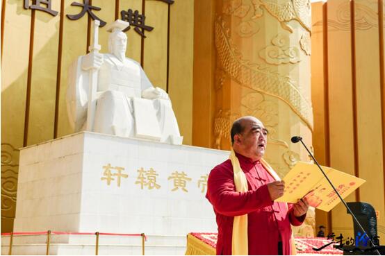 汾酒集团董事会秘书长张琰光致拜祖大典辞,表达了酒业炎黄后裔恭以虔诚感恩之情拜祭始祖黄帝的深情厚谊,并祈愿祖国昌盛,中原富足安康,汾酒清香流远,传承光大。