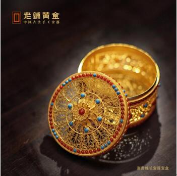 老铺黄金花丝镶嵌“富贵绵长”宝莲宝盒