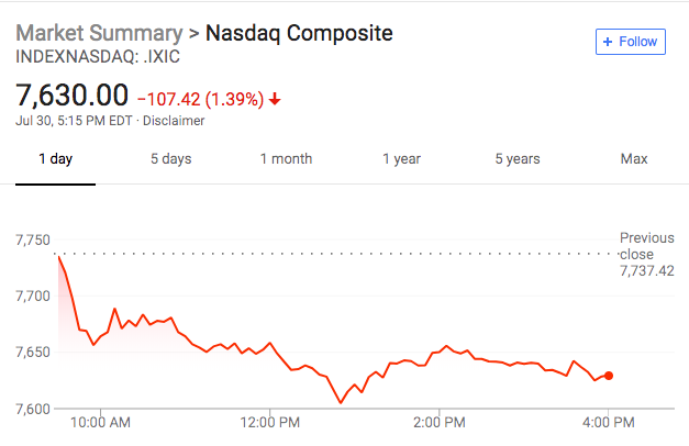 纳指收跌逾百点,推特领跌科技股。