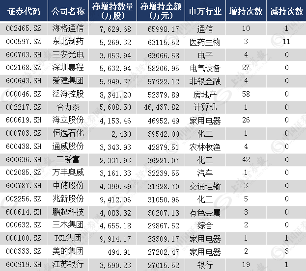 数据显示,5月份有233家公司被增持,金额总计83亿元;6月份有357家公司被增持,金额总计75亿元;7月份有286家公司被增持,金额总计73亿元。