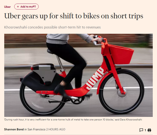 他承认,Uber在自行车上赚的钱要少于从同一辆车中获得的钱,但他表示,如果客户更频繁地使用这类出行方式,那么这种影响将会被抵消。公司已经在旧金山看到了成效。