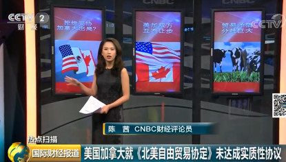 (央视财经《国际财经报道》)在上一星期经历数天谈判之后,美国和加拿大并没有就《北美自由贸易协定》达成任何实质性的协议,而特朗普威胁,要把加拿大赶出北美自贸区,他宣称如果不达成一个好的协议,就让加拿大出局。那么在本周,事态将会如何发展?
