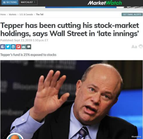 对冲基金大佬大卫·泰珀(David Tepper)对股市作出了不那么乐观的预期,他指出市场对国际紧张形势感到担心,而且美股牛市现在已经进入了第十个年头,因此投资者应自我节制。