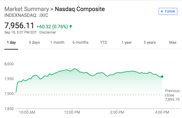 环球财经网讯 北京时间9月19日消息,截至周二收盘,标普500指数收涨15.51点,涨幅0.54%,报2904.31点。道指收涨184.84点,涨幅0.71%,报26246.96点。纳指收涨60.32点,涨幅0.76%,报7956.11点。