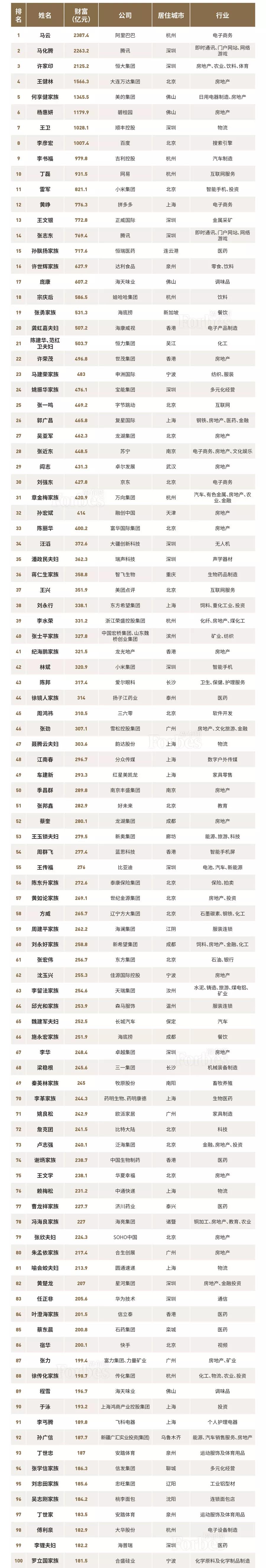 福布斯发布2018中国400富豪榜 马云回归榜首 马化腾蝉联榜单第2名