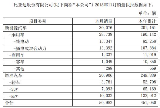 比亚迪:11月份销量5.09万辆