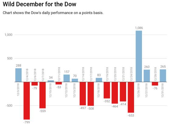 但这并不能解释12月对投资者来说有多疯狂。在圣诞节前夕,标普500指数从盘中的历史高点下跌超过20%,短暂地满足了熊市的需求。股市将在下一交易日飙升,道指在12月26日上涨超过1,000点,这是有史以来的最高点。