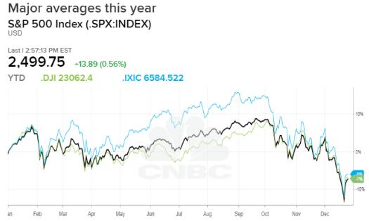 由于标准普尔500指数在2018年跌幅超过6%,美国股市在十年内表现最差