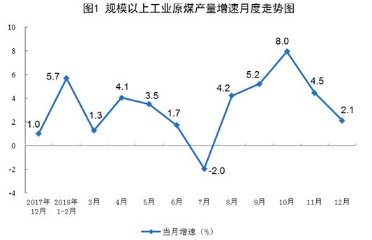 12月份,原煤产量3.2亿吨,同比增长2.1%,增速比上月回落2.4个百分点;日均产量1033万吨,环比减少18万吨。