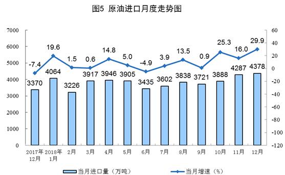原油进口量再创新高。12月份进口原油4378万吨,同比增长29.9%,进口量环比增加91万吨。全年进口原油4.6亿吨,同比增长10.1%,进口量与生产量之比为2.44:1。