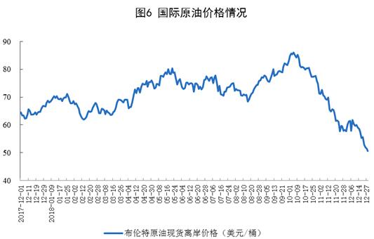 国际原油价格震荡下跌。截至12月28日,布伦特原油现货离岸价格为每桶50.57美元,比11月底下跌7.14美元,比年初低16.08美元。
