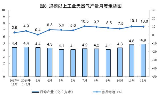 12月份,为保障冬季供暖,长庆及西南地区主力气田增产保供,生产天然气153亿立方米,同比增长10.0%,增速与上月基本持平;日均生产4.9亿立方米,环比增加0.1亿立方米。