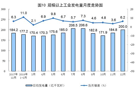 受全国大范围低温天气影响,用电需求增加,电力生产加快。12月份发电6200亿千瓦时,同比增长6.2%,增速比上月加快2.6个百分点;日均发电200亿千瓦时,接近夏季高温天气发电水平。