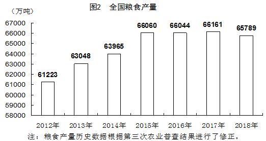 全年全国粮食总产量65789万吨,比上年下降0.6%,仍是历史高产年,连续4年保持在65000万吨以上。其中,夏粮产量13878万吨,早稻产量2859万吨,秋粮产量49052万吨。棉花产量610万吨,比上年增长7.8%。种植结构进一步优化,优质稻谷播种面积扩大,玉米播种面积继续调减,大豆种植面积增加,棉花、糖料、中草药材作物种植面积增加。