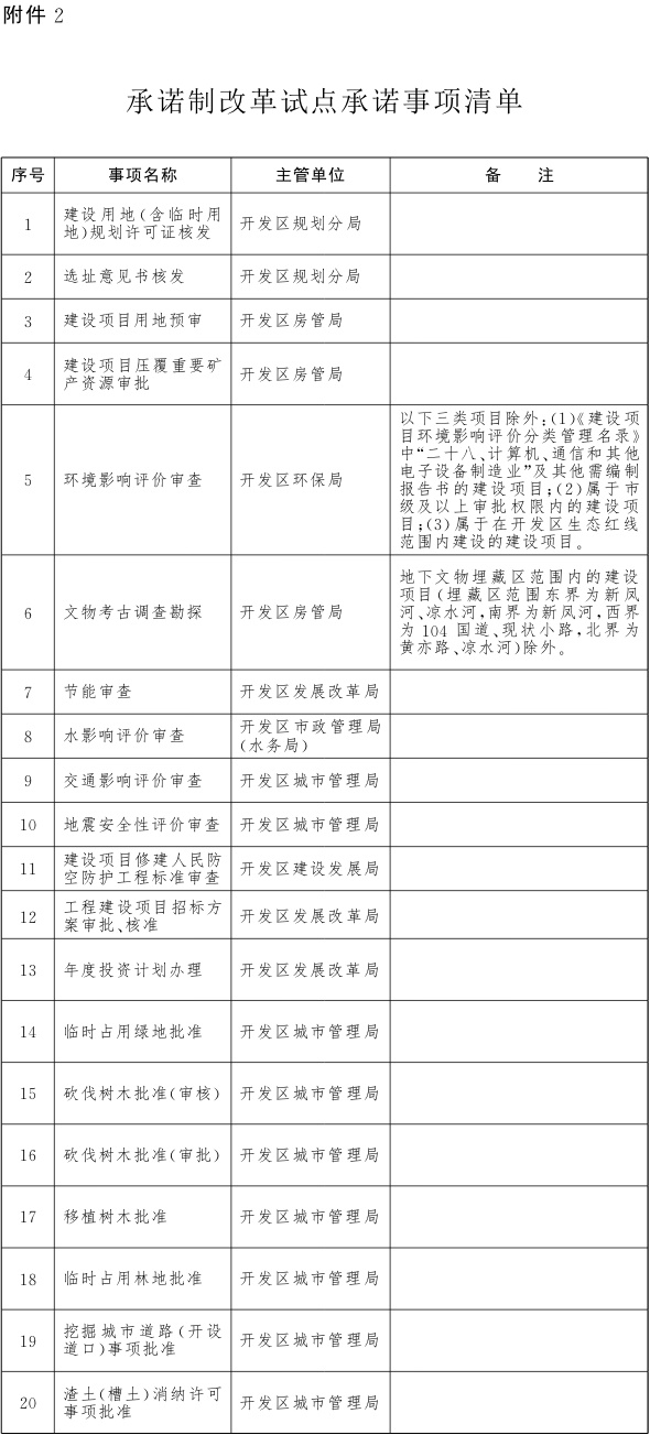 (一)强化责任落实。开发区管委会要充分发挥统筹协调作用,细化分解工作任务,健全协调落实推进机制,优化完善操作流程,扎实推进改革试点工作。开发区有关部门要尽快制定配套改革措施,细化完善办事指南、操作方法和相关技术导则,主动做好政策咨询和技术指导服务。
