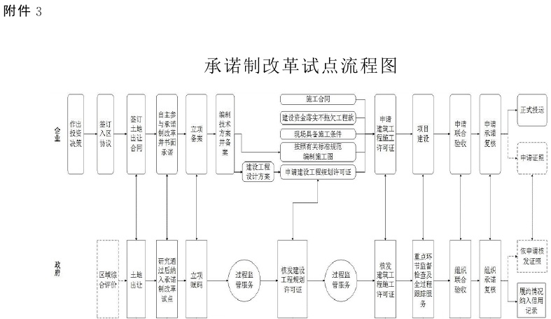 对拟参与承诺制改革试点的投资项目,由企业向开发区管委会提出书面申请,开发区管委会研究通过后,签订承诺事项告知承诺书,并及时在开发区政府网站向社会公示,公示期为5个工作日。公示期满后,项目正式纳入承诺制改革试点范围,企业即可向立项部门备案、获取项目代码,并依法依规自主开展项目设计等工作。