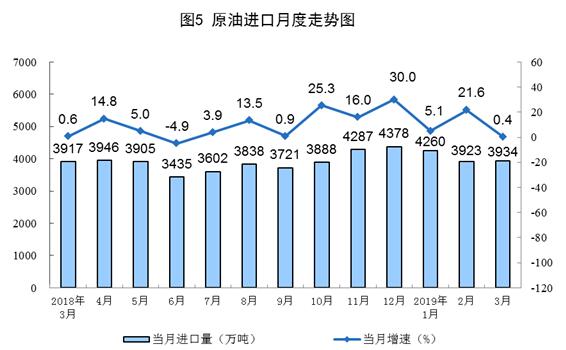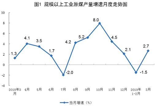 2019年3月份能源生产情况:工业原煤、原油、天然气和电力生产加快