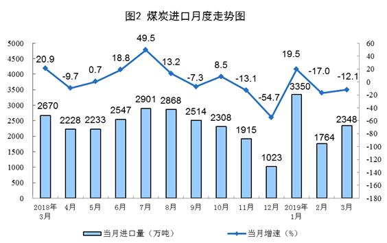 3月份进口煤炭2348万吨,同比下降12.1%,连续两个月降幅达两位数。1季度煤炭进口量同比下降1.8%。