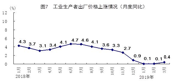 一季度,全国工业生产者出厂价格同比上涨0.2%,涨幅比1-2月份扩大0.1个百分点,比上年同期回落3.5个百分点。3月份,全国工业生产者出厂价格同比上涨0.4%,涨幅比上月扩大0.3个百分点;环比上涨0.1%。一季度,全国工业生产者购进价格同比上涨0.1%,其中3月份同比上涨0.2%,环比持平。