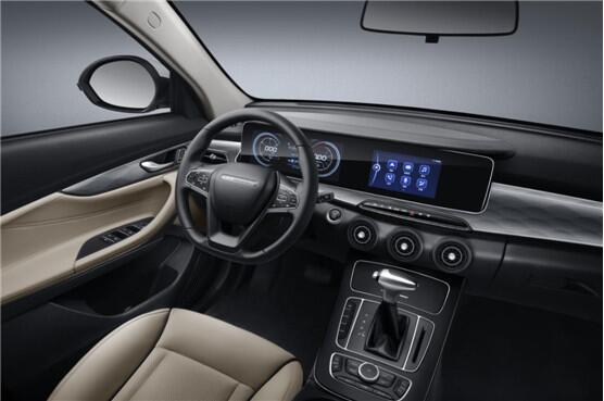 猎豹新CS10也将外观的现代化气质进一步延续到了车内,位于中控台区域的全新贯穿式豪华双显大屏十分瞩目,其中,左边屏幕主要承担仪表盘功能,全新运动风格的仪表盘采用的是更加显眼的数字显示方式,科技感十分强烈,运动属性突出,右边屏幕则承担了传统中控屏的功能,并支持手机互联、车载Wifi、语音控制、查询实时交通、天气等多重功能,为驾乘体验加分不少。同时猎豹新CS10还采用了全新造型的飞机式推杆换挡把和三幅式运动方向盘等配置,可以让人感受到内饰档次感与科技感的全方位提升。