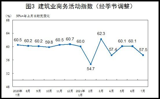 分行业看,建筑业商务活动指数为57.5%,低于上月2.6个百分点。服务业商务活动指数为52.5%,高于上月0.2个百分点。从行业情况看,水上运输、电信广播电视及卫星传输服务、资本市场服务等行业商务活动指数位于60.0%以上高位景气区间;其他金融业、房地产、居民服务等行业商务活动指数位于临界点以下。