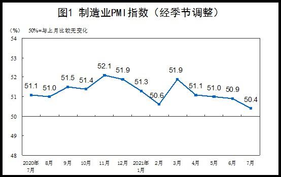 7月中国制造业PMI为50.4% 低于上月0.5个百分点