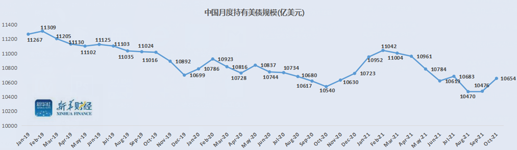 据新华财经计算,2021年1-10月,中国净减持69亿美元美债,减持力度最大的月份分别是5月、6月、8月,分别减持177亿美元、165亿美元和213亿美元。增持力度最大的月份是今年1月,净增持额达229亿美元。