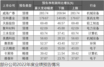 值得一提的是,近期新上市公司中,有20多家公司2022年度业绩预喜,尤其是一批医药生物企业业绩表现亮眼。