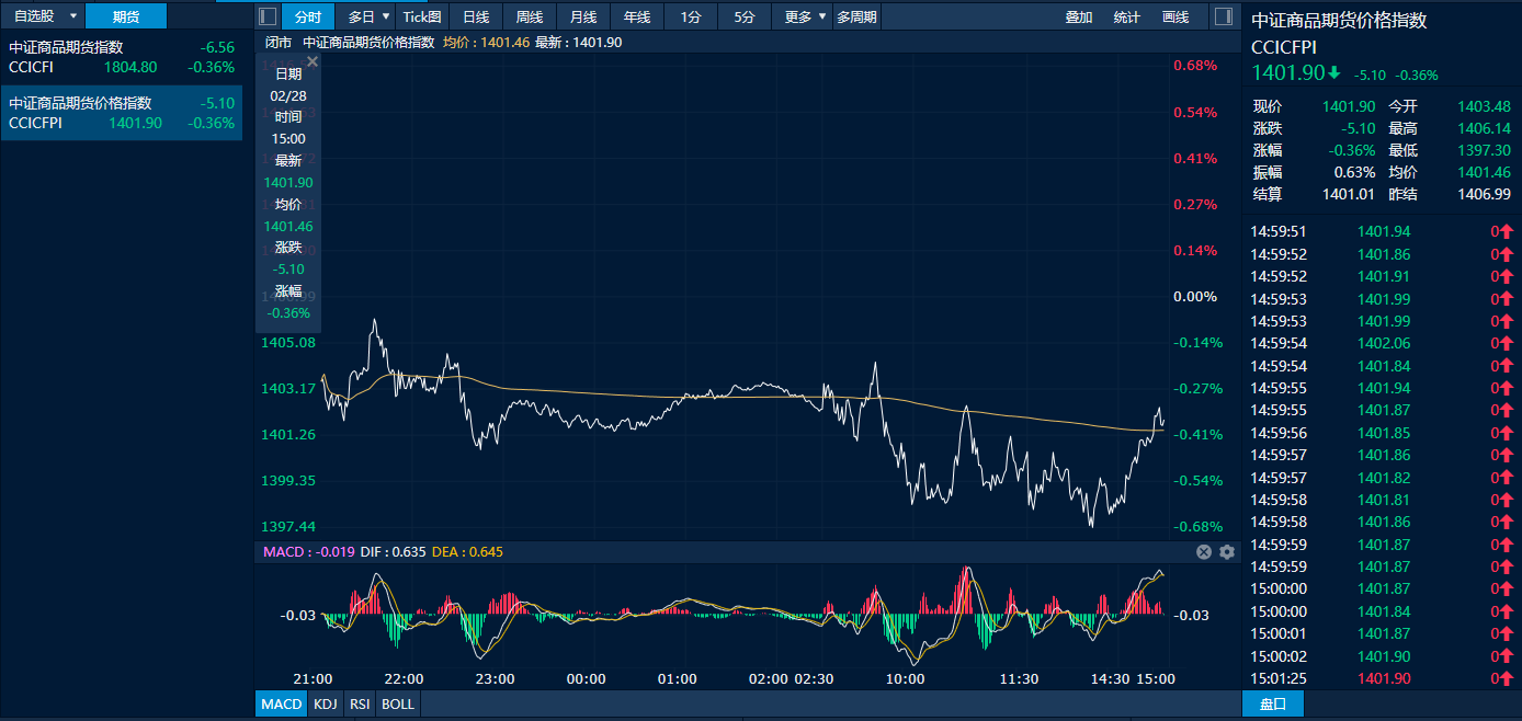 中证商品期货价格指数2月28日日内走势图
