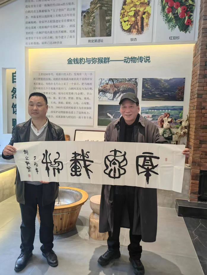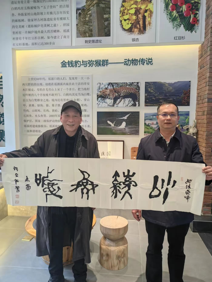 著名学者、诗书画家,中国少数民族文物保护协会副会长、民族品牌文化委员会会长、中国民族书画院院长胡立新一行来到杭州市桐庐合村乡指导5A级景区生仙里就创建民族特色生态文化公园建设,与桐庐县和合村乡负责同志进行交流座谈。美哉瑶溪,在现场创作笔会上,艺术家满怀激情,泼墨挥豪,用画卷书写合村乡之美,人文之美,生态之美,和合之美。为此赋诗“合村好人家,仙姑来端茶,妙趣不言说,三味化彩霞。”合村乡的明天更美好,更灿烂。