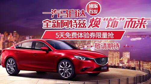 近日,又一款明星车型重磅登陆一嗨租车。此次的主角是一汽马自达全新阿特兹,为此,一嗨租车联手一汽马自达,共同推出了全新阿特兹五天免费体验券限量抢活动,幸运者可获得免费体验全新阿特兹的宝贵机会。