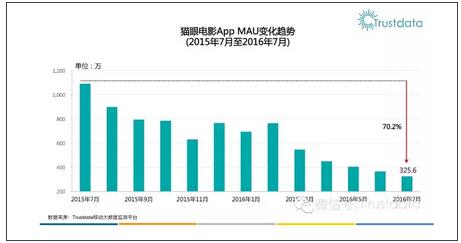 根据Trustdata信诺大数据的报告显示,猫眼App的月活从2015年7月超千万的峰值,直线下降到2016年7月的300万多一点,同比下降超过70%。猫眼“票补换市场”的策略正式宣告失败,急需寻找其他途径来稳固自己的用户量。于是才会出现前文中说到的那样,猫眼想借一把微信小程序的东风,据称郑志昊为了获得腾讯的支持,天天往腾讯跑,透支着自己曾在腾讯工作的资源。但可惜的是,微信官方早就指出,小程序的推广在于线下消费场景的搭建,人情并不能带来流量。