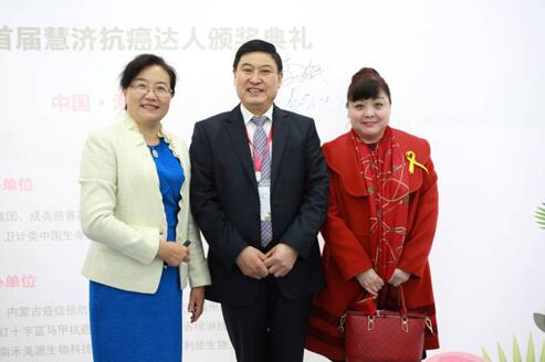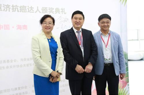 卫计委中国生命关怀协会关爱生命公益事业办公室戴文飞女士、国际癌症康复协会会长、北京振国肿瘤医院院长、慧济抗癌首席医学专家王振国教授、海南慧济总裁李海平女士合影。