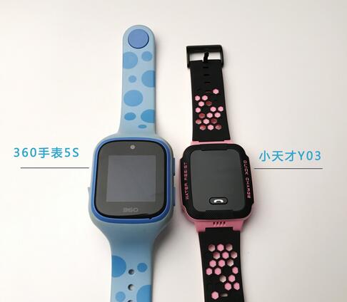 360儿童手表5S除了笔者手上的黑色之外,还有多种配色,小天才Y03除了笔者手上,这个偏女孩的粉黑色外,还有偏男孩的蓝黑色。