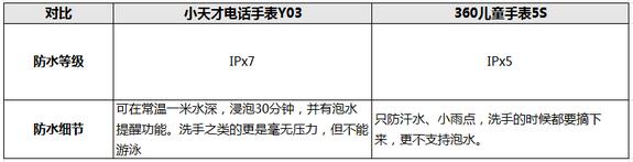 这意味着虽然看上起只有两级的差距,但是360儿童电话手表5S跟小天才Y03天差地别,一个能短时间泡水、洗手更是毫无压力了,而360儿童手表5S只能防小雨点和汗水。