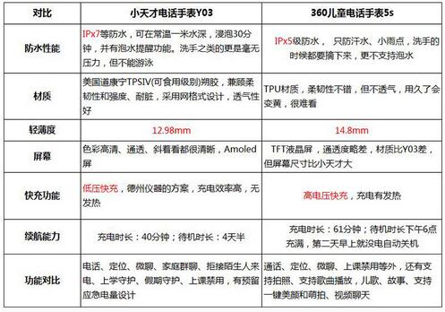 在快充上,虽然两者都支持快充,但是采用的方案不一样,小天才Y03采用的是低压快充,德州仪器方案。而360儿童手表5s采用的是高压方案,充电效率、发热和安全性上来说,低压快充明显更胜一筹,这已经在成熟的手机行业里早已达成共识,在此笔者就不多说了。