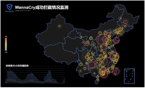(腾讯安全反病毒实验室96小时勒索病毒监控图)