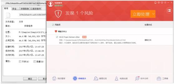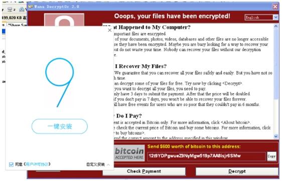 与此同时,腾讯安全反病毒实验室还追踪到了WannaCry病毒新的入侵手段。WannaCry勒索病毒开始利用捆绑正常软件进行传播,目前已经确认,部分下载器安装包被黑客捆绑勒索病毒,后续可能会出现类似软件捆绑。目前该变种已经被腾讯电脑管家拦截。
