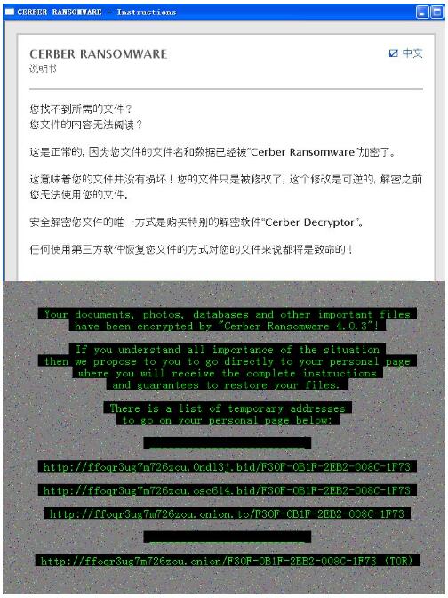 Cerber也是最近比较常见的一类木马,以其给加密后的文件添加.cerber*系列后缀而得名。Cerber主要通过网络挂马传播,至今已升级到第五代,作者使用公开的黑客工具包能够覆盖大量的已知漏洞,通过渗透网站、投放恶意广告等方式进行挂马。
