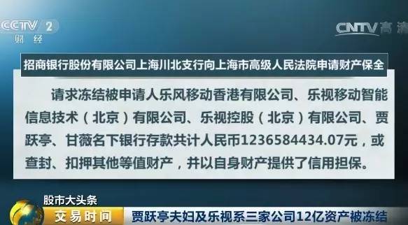 贾跃亭夫妇及乐视系三家公司12亿资产被冻结